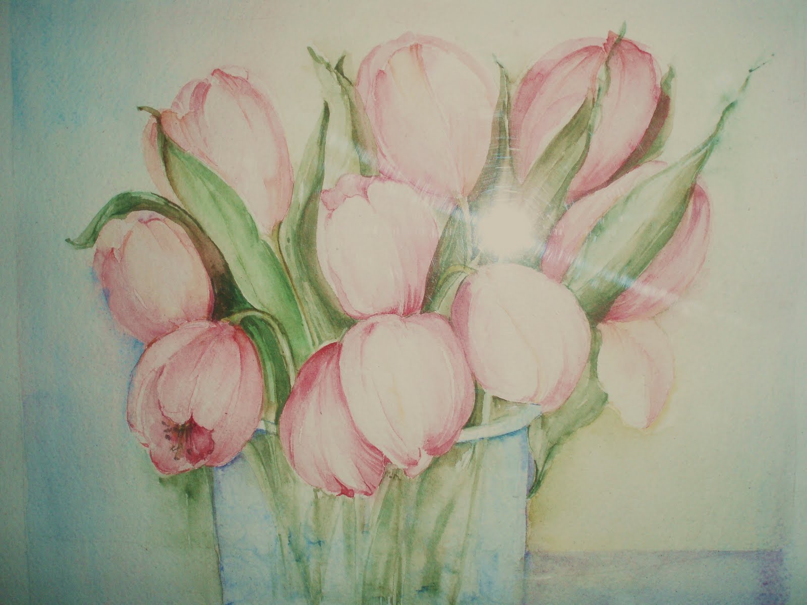 In genere si consiglia un vaso alto perchè i tulipani tendono a crescere di qualche centimetro ed inoltre, lo stelo assume un portamento un pò ricadente (come nel caso mio mazzo di tulipani in vaso ad acquarello), il che può sì creare senso di disordine al bouquet, ma questo effetto informale può anche essere volutamente ricercato per dare naturalezza e senso di morbidezza all'insieme dei fiori.